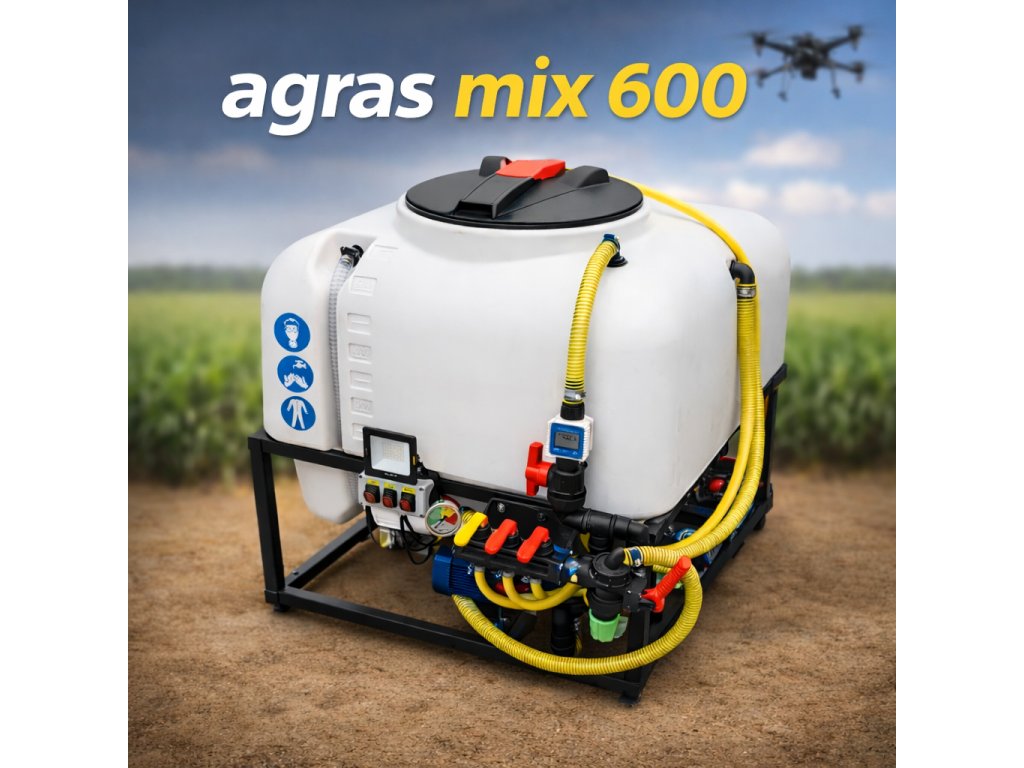 AGRAS MIX 600 predstavuje moderné riešenie pre efektívnu prípravu a plnenie postrekov v oblasti dronových aplikácií. Zariadenie je navrhnuté s dôrazom na spoľahlivosť, jednoduchú obsluhu a vysoký výkon v teréne. Vďaka robustnej oceľovej konštrukcii, kvalitným komponentom a premyslenému systému miešania zabezpečuje homogénnu zmes a rýchle plnenie, čím výrazne zvyšuje produktivitu práce. AGRAS MIX 600 je ideálnou voľbou pre profesionálov v poľnohospodárstve, ktorí hľadajú spoľahlivé a efektívne riešenie pre každodenné nasadenie.