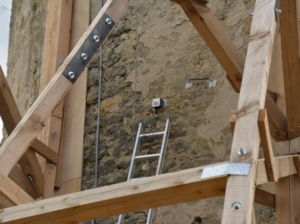 Experti na monitorovanie v TPI a 3gone zvážili túto výzvu a odporučili použitie bezdrôtového monitorovania Senceive na detekciu štrukturálnych pohybov v štyroch častiach hradu. Nainštalovali senzory trhlín na viditeľné povrchové trhliny. To poskytlo prehľad o vzore „normálneho“ cyklického pohybu spojeného so meniacimi sa poveternostnými podmienkami a umožnilo detekciu akýchkoľvek abnormálnych zmien mimo bežného vzoru.